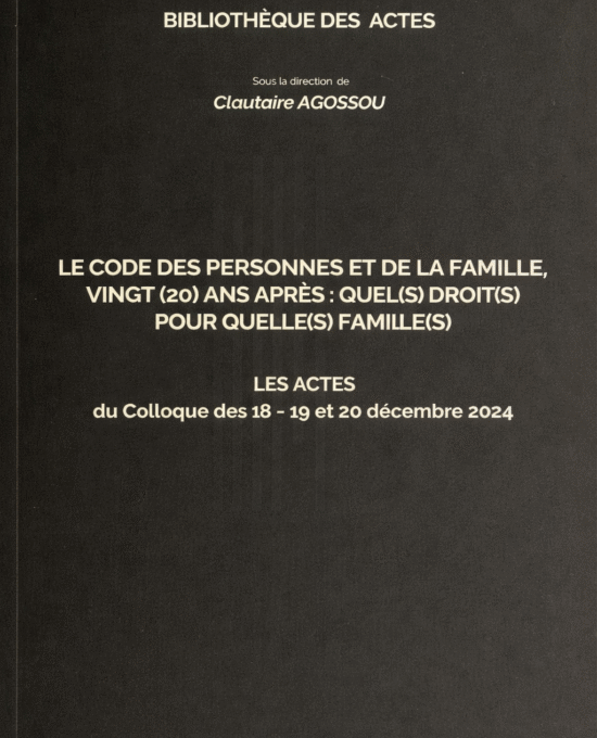 Le Code des personnes et de la famille, Vingt (20) ans après: quel(s) droit(s) pour quelle(s) famille(s), Les actes du colloque des 18 – 19 et 20 décembre 2024